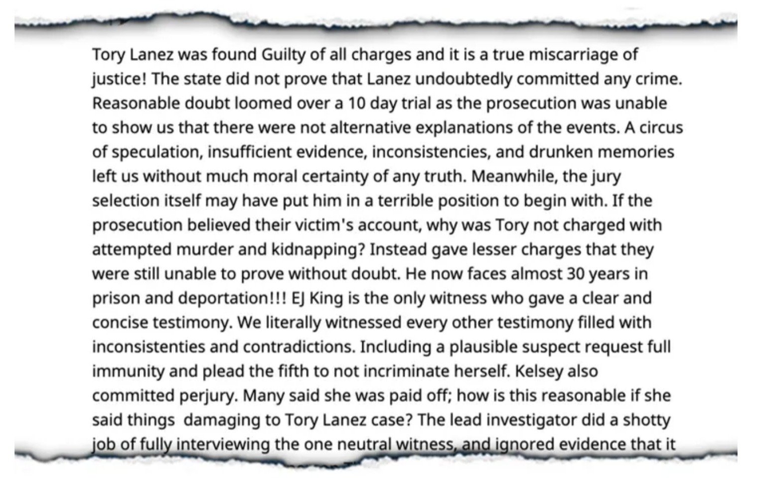 The request guarantees Conservative's preliminary was a "circus of speculation, insufficient evidence, inconsistencies, and drunken memories [that] left us without much moral certainty of any truth."